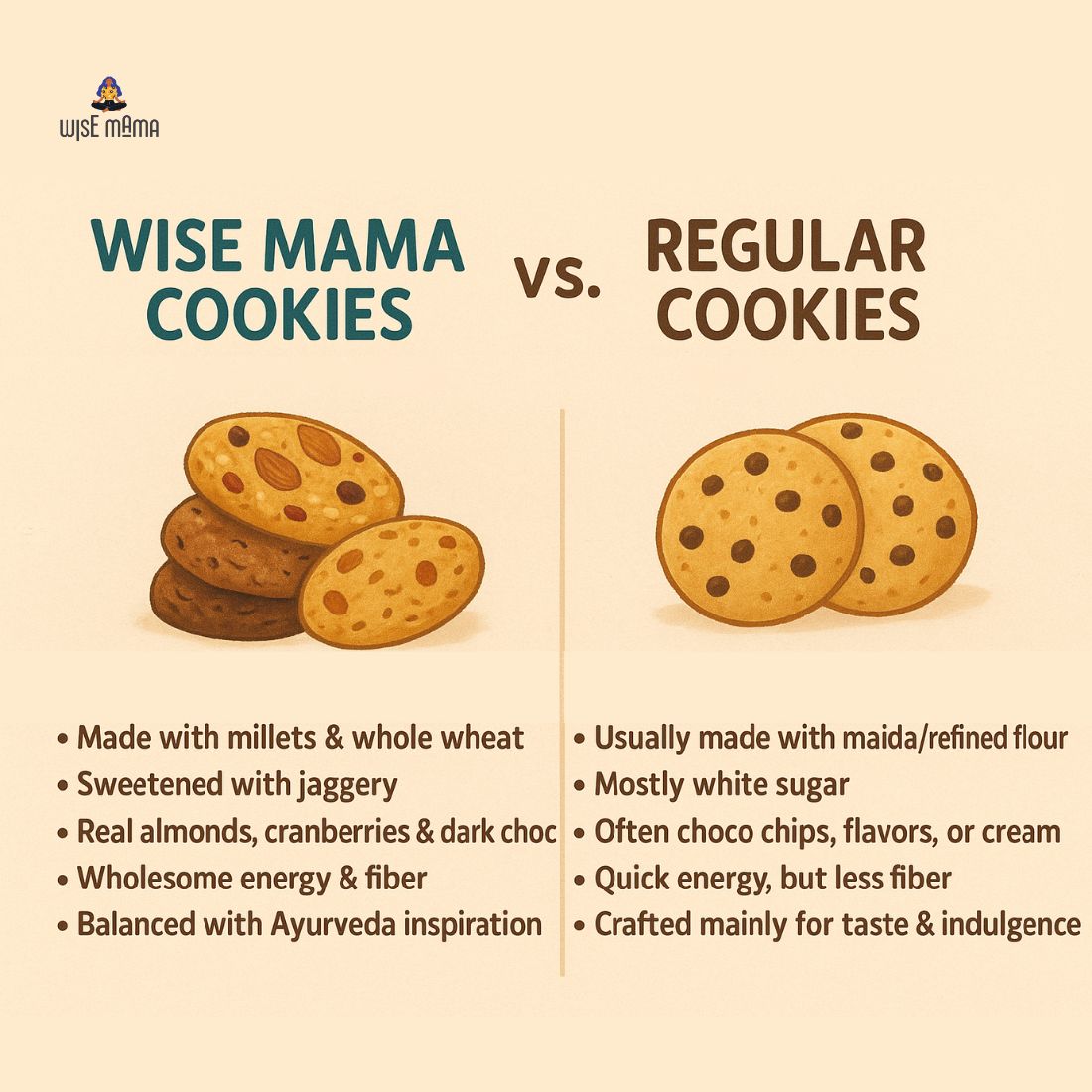 At Wise Mama, we know the cookie struggle — you crave a buttery, crunchy cookie, but don’t want the guilt of maida, refined sugar, or palm oil.