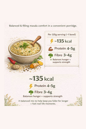 Wise Mama's Desi Masala Millet Porridge is the shortcut your family deserves — a bowl that tastes like you slow-cooked it with love, ready in under 6 minutes. Made with three power millets (little millet, barnyard millet, and foxtail millet), slow-roasted in ghee and packed with turmeric, ginger, garlic, and real Indian spices, it delivers the kind of nourishment that used to take an hour to prepare.