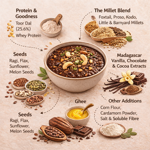 - Ancient Grains: Thoughtfully combined with calcium-rich ragi and ancient, nourishing millets for sustained energy.